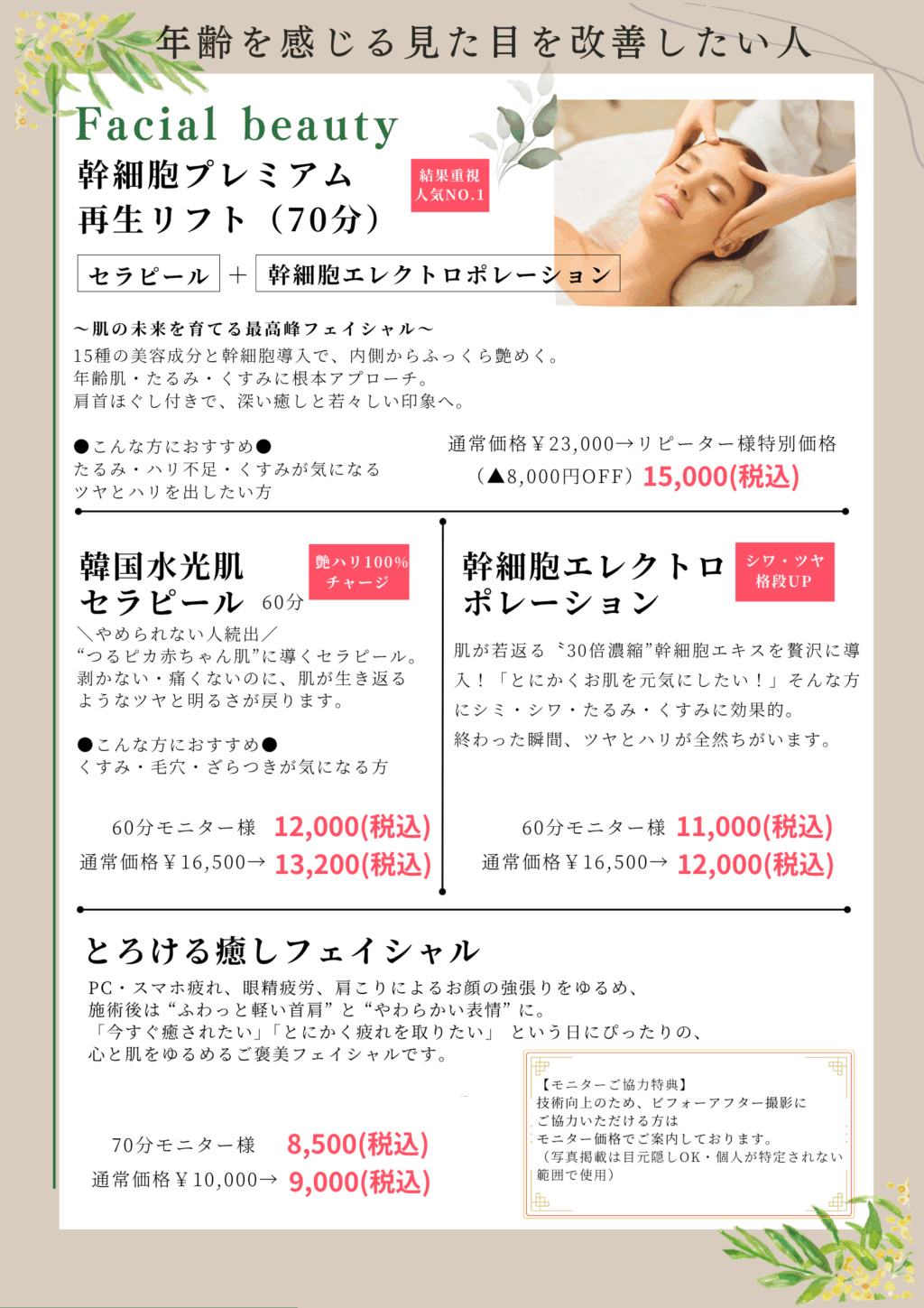 フェイシャルコース一覧